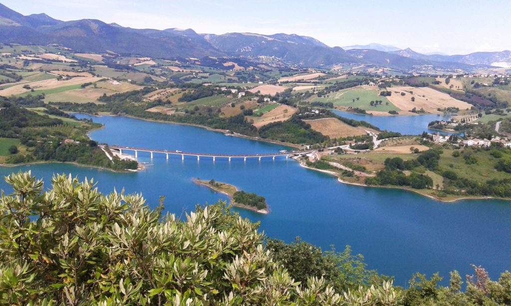 I lavori per la realizzazione di questo bacino artificiale sono iniziati nel 1981, per concludersi sei anni dopo. La diga, alta 67 metri e lunga 280, è stata costruita per rispondere a diverse esigenze: per uso irriguo, per l’acqua potabile e per regolare le piene del fiume Musone.